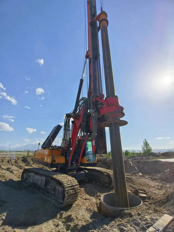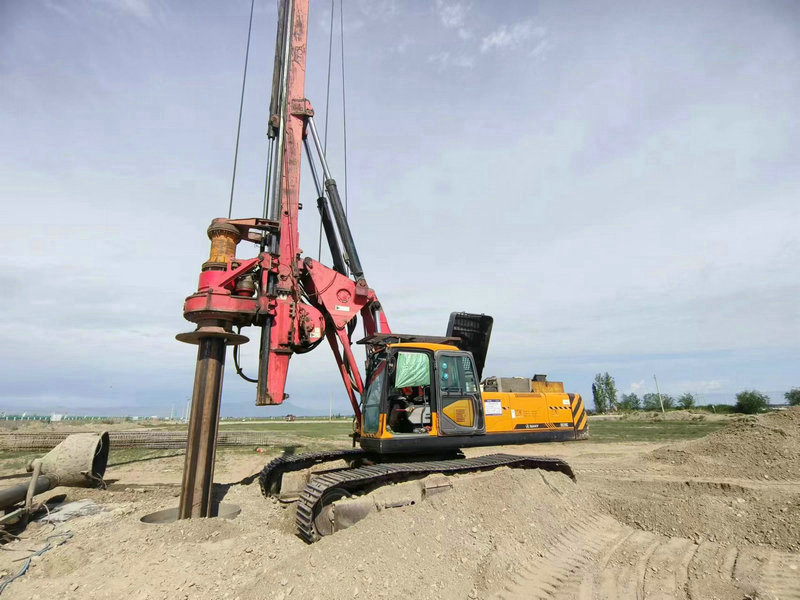 旋挖鉆鉆孔施工2024-06-22圖為新疆兵團建工水電集團市政路橋公司第五師雙河市沙山子線公路互通立交工程主線大橋左幅,臺,樁基,旋挖鉆鉆孔施工。王小丫攝...