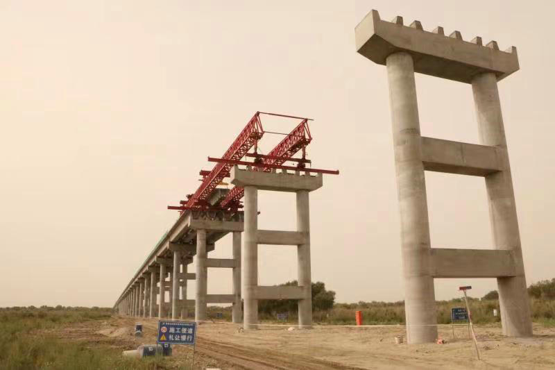 葉爾羌河特大橋全長2888米,最大墩高21米,共96跨,采用384榀箱梁結(jié)構(gòu),橫跨第三師圖木舒克國家級胡楊林公園和葉爾羌河,環(huán)水保要求高 、施工難度大,是圖昆公路關(guān)鍵節(jié)點工程。為加快施工進度和確保安全質(zhì)量受控,項目部成立施工協(xié)調(diào)小組,討論制定完善的施工方案及施工計劃,在順利完成橋梁樁基施工的基礎(chǔ)上積極為后續(xù)作業(yè)創(chuàng)造條件,實現(xiàn)了墩柱施工、箱梁預(yù)制施工齊頭并進的良好局面。