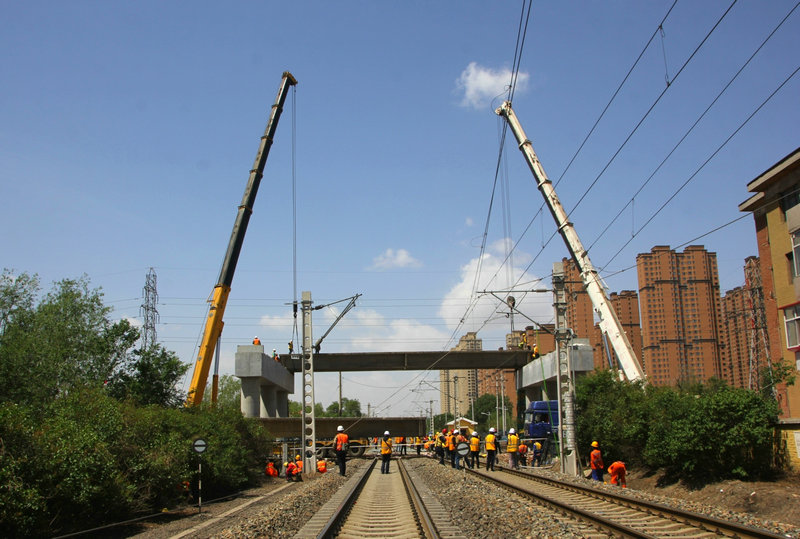 該研究成果,源于哈爾濱市香坊區(qū)境內(nèi)的哈牡電氣化鐵路改造項目,濱綏鐵路K9果園街公鐵立交橋工程。該橋全長1001.8米,其中第12孔跨越既有濱綏鐵路和香東電氣化鐵路。行車密度大、施工場地狹小、地下光電纜縱橫交錯、安全風(fēng)險居高不下,直接影響鐵路行車安全,備受關(guān)注。