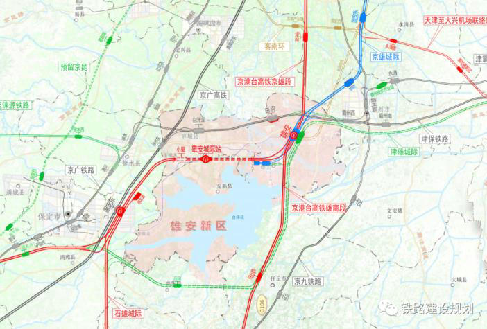 作為雄安新區(qū)“四縱兩橫”區(qū)域高速鐵路交通網(wǎng)絡(luò)的“一橫”,雄忻高鐵起自在建的京雄城際雄安站,向西穿越雄安新區(qū)起步區(qū),在起步區(qū)設(shè)雄安城際站和小里站。該線路自白溝引河?xùn)|側(cè)入地,沿起步區(qū)東西軸線地下敷設(shè),由萍河西側(cè)出地面,向西南折向保定東站。其中,城際站位于啟動區(qū)核心區(qū),小里站位于起步區(qū)第一組團中心區(qū)域,均規(guī)劃為雄安新區(qū)“三主兩輔”樞紐客站格局中的主客站。