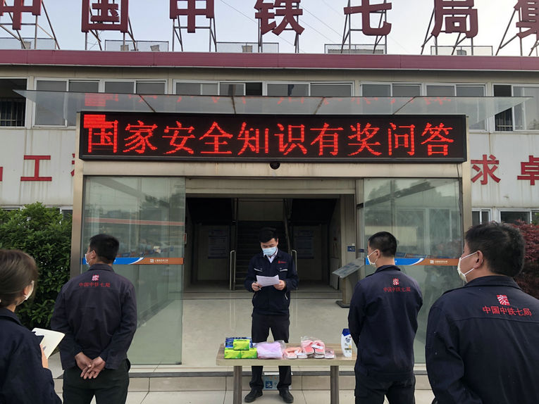 “國(guó)家安全教育日”是哪一天?”,“我知道,是4月15日”;“《國(guó)家安全法》是什么時(shí)間頒布的?”,“這里!這里!是2015年7月1頒布的”、“我國(guó)國(guó)家安全領(lǐng)域包括哪些方面內(nèi)容?”,“包括:政治安全、國(guó)土安全、經(jīng)濟(jì)安全……”4月15日,在中鐵七局武漢地鐵5號(hào)線八標(biāo)項(xiàng)目部院內(nèi),一場(chǎng)別開生面的有獎(jiǎng)競(jìng)答活動(dòng)拉開了帷幕,大家爭(zhēng)先恐后參與競(jìng)答,現(xiàn)場(chǎng)氣氛十分熱烈。