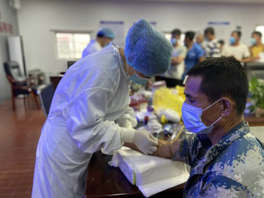 醫(yī)務(wù)人員為職工進(jìn)行健康體檢