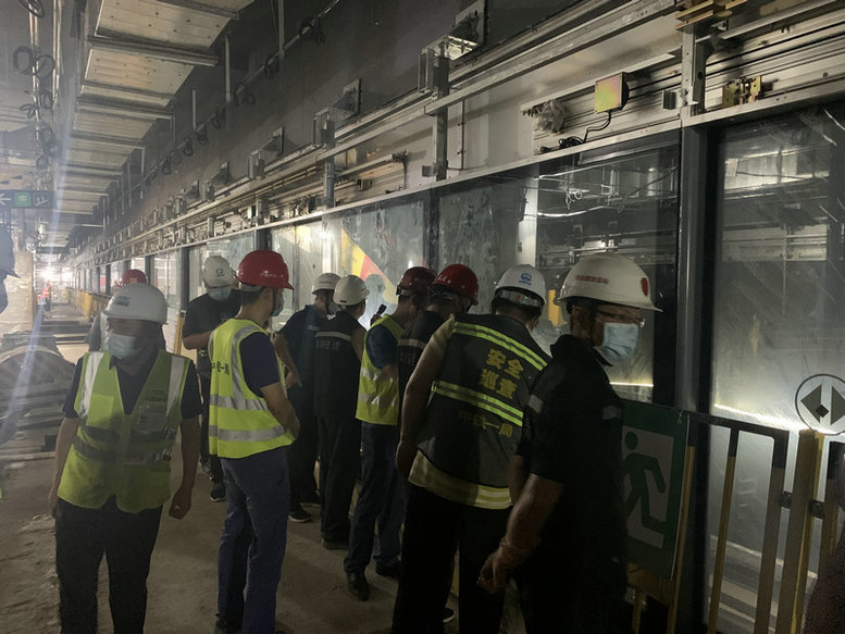 首先王天寶一行先后查看福田保稅區(qū)站內(nèi)現(xiàn)場施工進展情況,重點檢查了施工現(xiàn)場高空作業(yè)、臨時用電、夏季防汛及受限空間作業(yè)的安全措施等落實情況。隨后,接觸軌項目負(fù)責(zé)人王書俊就接觸軌設(shè)備安裝進度、成品保護以及目前面臨的問題等情況做了簡要的匯報。