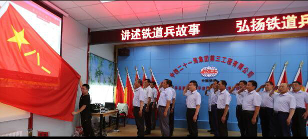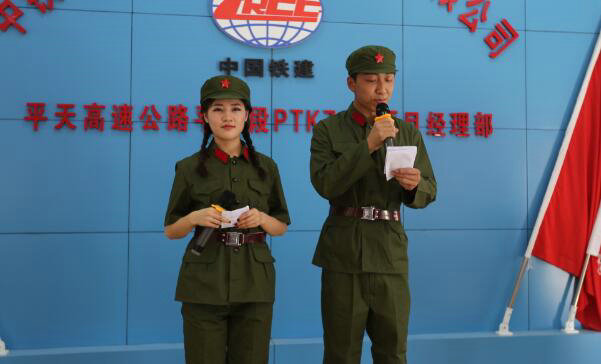 下午4時,項目部會議室莊嚴肅穆。主持人張生晶、向前身著65式軍服,鮮紅的帽徽領章在綠軍裝的映襯下格外鮮艷奪目。當她們用標準的普通話宣布三公司平天高速公路一標項目部“講述鐵道兵故事,弘揚鐵道兵精神”主題活動暨紀念“八一”建軍節(jié)活動隆重開幕時,臺下響起了經(jīng)久不息的熱烈掌聲。