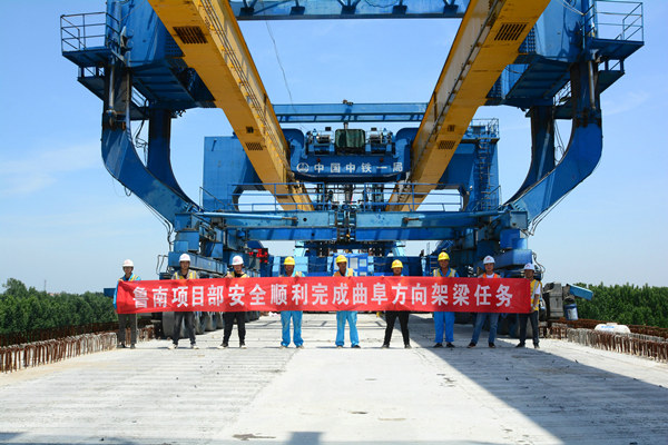 5月19日,隨著架梁一隊洸府河特大橋曲阜端最后一孔箱梁穩(wěn)穩(wěn)地落在146#—147#橋墩上,魯南高鐵鋪架分部架梁一隊安全順利完成曲阜方向296孔箱梁架設任務,架梁施工取得階段性勝利。