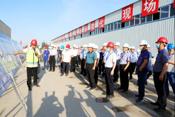 中國鐵路工程建設(shè)網(wǎng)訊(通訊員: 文學(xué)紅 劉偉 趙海濤 范通帥)5月24日,河北省交通投資集團公司組織雄安新區(qū)對外骨干路網(wǎng)建設(shè)各參建單位一百余人到中鐵一局京德高速ZT7合同項目觀摩學(xué)習(xí),觀摩京德高速智慧科技安全體驗中心、鋼筋加工廠以及貫通的跨趙王新河鋼棧橋,對現(xiàn)場的技術(shù)創(chuàng)新、智慧科技的運用、標(biāo)準(zhǔn)化建設(shè)和文明施工予以高度評價。