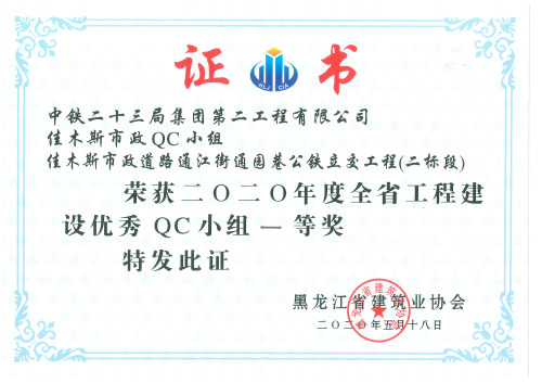 5月20日,從2020年黑龍江省工程建設(shè)優(yōu)秀QC小組活動(dòng)成果交流視頻會(huì)上傳來佳報(bào),中鐵二十三局集團(tuán)第二工程有限公司佳木斯市政QC小組的提高臨近既有鐵路富水含砂深基坑施工效率成果喜獲一等獎(jiǎng);同時(shí)鐵龍QC小組的提高特種道岔安裝質(zhì)量一次合格率成果獲二等獎(jiǎng),為哈佳項(xiàng)目部QC成果再添佳績(jī)。
