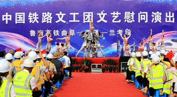 6月4日下午,中鐵一局承建的魯南高鐵荷曲段二標(biāo)濟(jì)寧北站現(xiàn)場座無虛席、歌聲嘹亮。中國鐵路文工團(tuán)赴魯南高鐵慰問演出第二場在這里舉辦,為魯南高鐵荷蘭段參建員工帶來了一場豐富精彩的視聽盛宴,標(biāo)段內(nèi)各參建單位共300余人參與觀看了此次演出。
