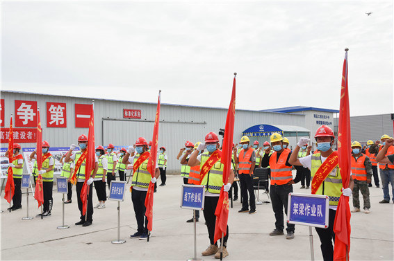 王剛在表態(tài)發(fā)言中講到,一要借著勞動競賽活動的“東風(fēng)”,充分調(diào)動全體參建員工的積極性、主動性,以更飽滿的熱情,投入后續(xù)施工當(dāng)中,圓滿、高效完成勞動競賽各項目標(biāo),助力公司在河北市場再創(chuàng)佳績、再立新功,持續(xù)開拓雄安新區(qū)乃至京津冀地區(qū)市場。二要抓住施工生產(chǎn)的黃金季節(jié),以安全質(zhì)量環(huán)保和文明施工為前提,以施工進(jìn)度為龍頭,以資源供給、有效協(xié)調(diào)為保證,全面調(diào)動激發(fā)廣大職工的積極性和創(chuàng)造力,做到全面開花,掀起項目建設(shè)高潮。三要統(tǒng)一思想,提高認(rèn)識,確保“五亮五比五創(chuàng)”主題實踐活動深入開展,激發(fā)黨員干部以更加強烈的責(zé)任擔(dān)當(dāng),更加飽滿的激情、更加旺盛的干勁、更加務(wù)實的作風(fēng)在項目建設(shè)熱潮中當(dāng)先鋒、爭先鋒。