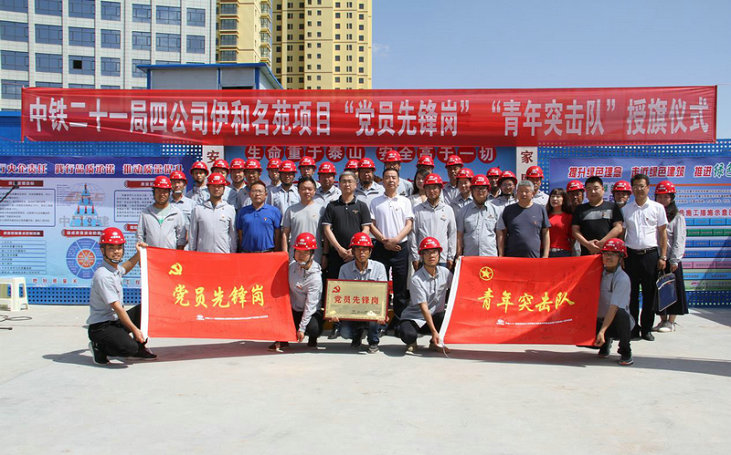 為慶祝建黨99周年,深入貫徹習(xí)近平新時(shí)代中國(guó)特色社會(huì)主義思想和黨的十九大精神,緊密結(jié)合公司“項(xiàng)目管控創(chuàng)效年”活動(dòng),充分發(fā)揮項(xiàng)目部黨員先鋒模范帶頭作用特別是青年職工生力軍作用,持續(xù)推進(jìn)項(xiàng)目創(chuàng)新發(fā)展、管理升級(jí)、提質(zhì)增效,7月1日,中鐵二十一局四公司臨夏市伊和名苑棚戶區(qū)改造A區(qū)項(xiàng)目部舉行“黨員先鋒崗”授牌、“青年突擊隊(duì)”授旗儀式,公司黨委書記、董事長(zhǎng)朱昌岳,黨委副書記、紀(jì)委書記杜長(zhǎng)松,特級(jí)項(xiàng)目經(jīng)理、副總經(jīng)理卜宗舉,副總經(jīng)理祁濤,臨夏道合房地產(chǎn)開(kāi)發(fā)有限責(zé)任公司黨委書記、董事長(zhǎng)馬麟出席儀式,儀式由杜長(zhǎng)松主持。