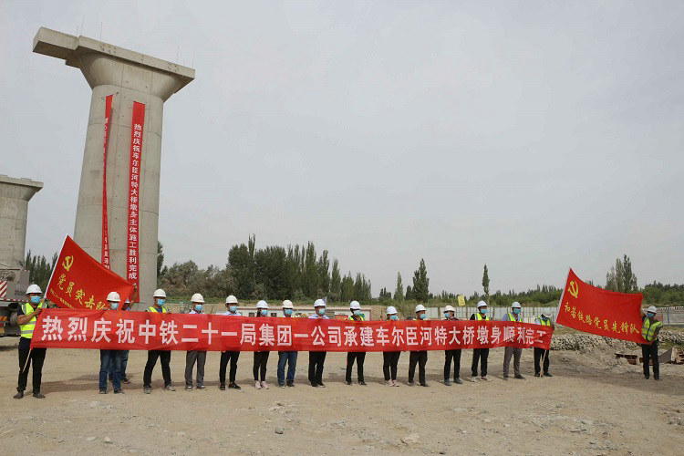 7月17日下午,隨著車爾臣河特大橋22號河中墩順利完成混凝土澆筑,標(biāo)志著中鐵二十一局一公司和若鐵路S5標(biāo)項目車爾臣河特大橋線下主體工程完工。