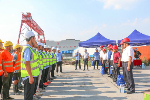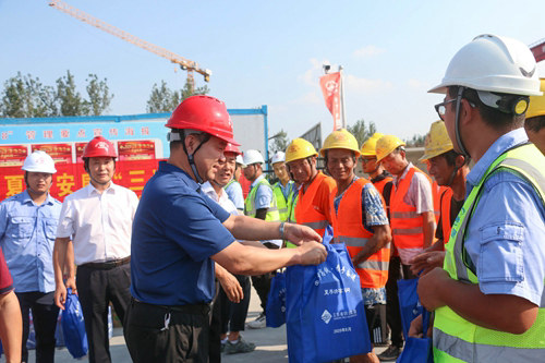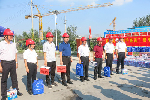 江蘇省鐵路集團(tuán)有限公司副總經(jīng)理史良洪、上海局集團(tuán)有限公司南京鐵路樞紐工程建設(shè)指揮部黨委書記毛永發(fā)、江蘇省鐵路集團(tuán)有限公司工會(huì)主席馮迎春、上海局集團(tuán)有限公司南京鐵路樞紐工程建設(shè)指揮部工程部長(zhǎng)高虎、江蘇南沿江城際鐵路有限公司總經(jīng)理助理葉宏到現(xiàn)場(chǎng)慰問(wèn)一線作業(yè)人員,公司副總經(jīng)理(主持工作)畢清泉、工會(huì)主席周先林及南沿江1標(biāo)項(xiàng)目經(jīng)理吳康、黨工委副書記高敏等人陪同開展活動(dòng),為一線工人發(fā)放了防暑降溫禮包、酸奶、鹽汽水等物品。
