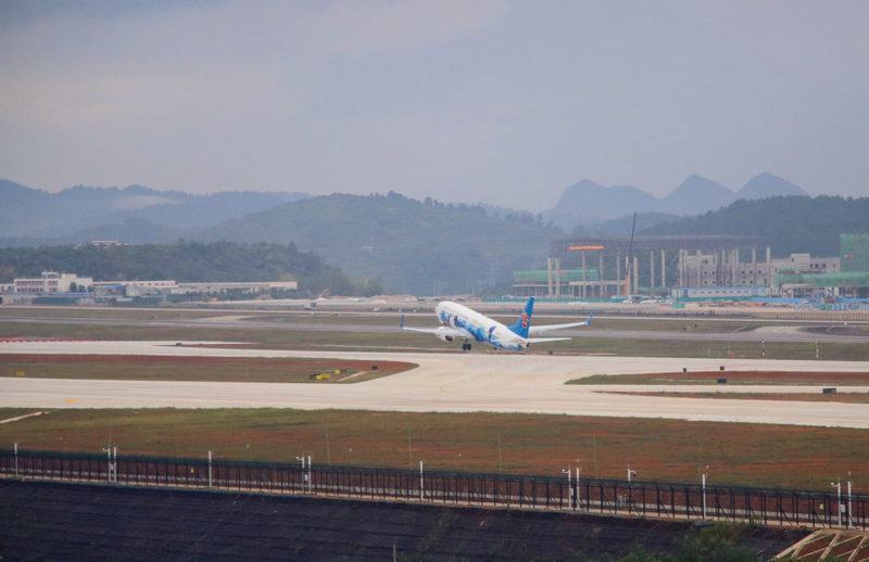 圖為貴州號(B737-800)成功降落后再次從貴陽機場東跑道上起飛冉埝/攝