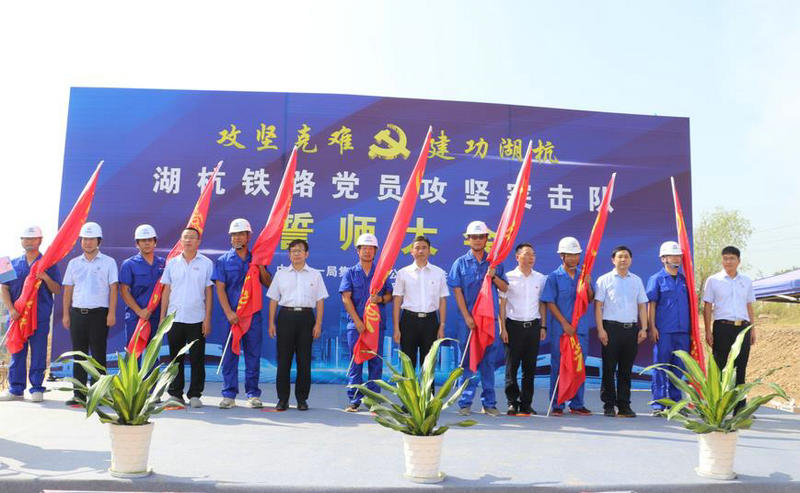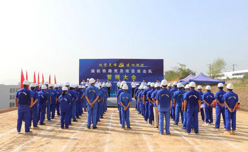 杭黃鐵路公司(滬昆客專浙江公司)黨委副書記、紀委書記丁玉強調(diào),“攻堅克難,建功湖杭”黨員攻堅突擊隊誓師活動,是項目今年黨建、團建創(chuàng)新工作的一個重要載體,是以構(gòu)建項目建設(shè)和黨建融合的一體化格局豐富黨建內(nèi)涵、深化“黨建+”品牌的重要抓手,是打響全線黨員聯(lián)合攻堅、助推項目主戰(zhàn)場的深入實踐,也是加強和深化企業(yè)黨建工作,充分調(diào)動廣大黨員、團員青年立足崗位、扎根一線、攻堅克難的一個重要方式,有利于加強湖杭鐵路全線參建單位溝通交流、黨建工作資源的整合、黨建活動的開展,切實為湖杭鐵路施工生產(chǎn)凝心聚力、保駕護航。
