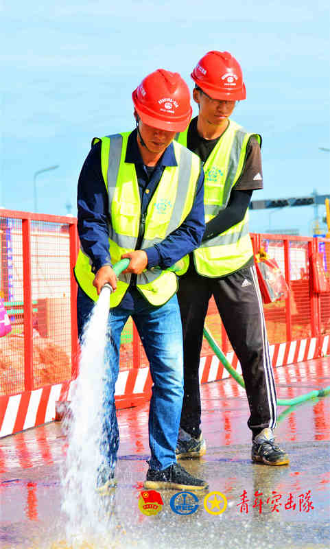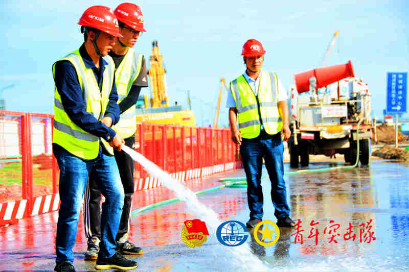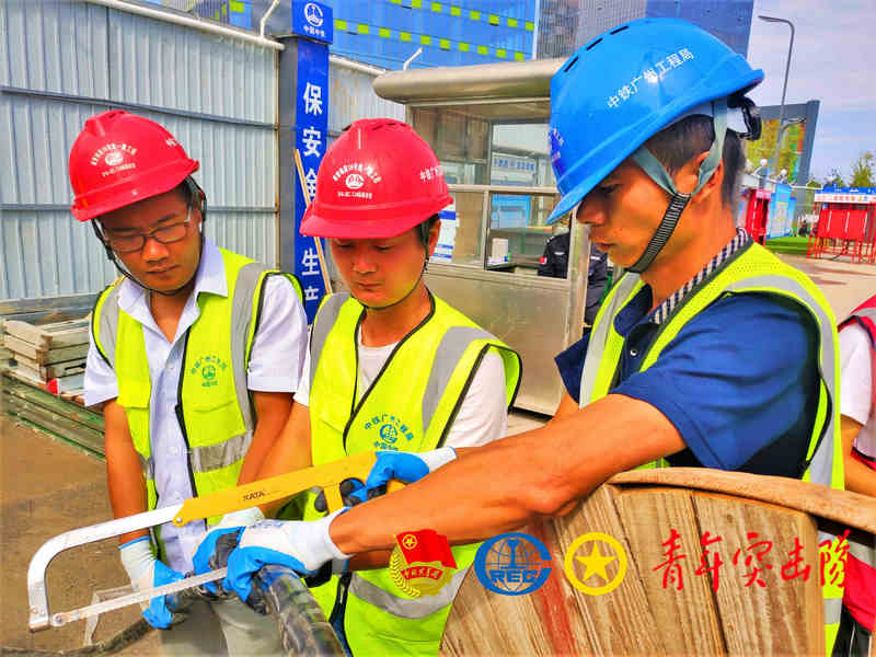 “一,二,三,嘿喲!嘿喲!”9月15日上午,響亮的號(hào)子聲打破了清晨的寧?kù)o,一大早,中鐵廣州局市政環(huán)保公司西咸項(xiàng)目部施工建設(shè)場(chǎng)地,已是一派熱火朝天的景象。當(dāng)日,項(xiàng)目部青年突擊隊(duì)近20余名隊(duì)員奮戰(zhàn)在項(xiàng)目施工一線,為滿足項(xiàng)目施工一線生產(chǎn)用電,進(jìn)行電纜鋪設(shè)工作。另外為做好施工現(xiàn)場(chǎng)文明施工,突擊隊(duì)員對(duì)施工現(xiàn)場(chǎng)環(huán)境衛(wèi)生進(jìn)行了清掃。
