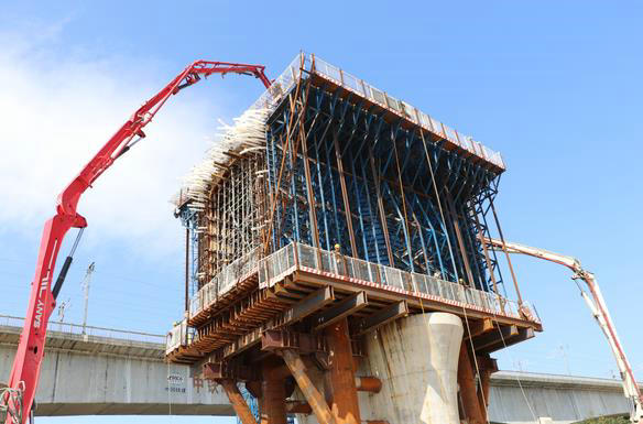 0號塊是連續(xù)梁施工的第一步,也是最關(guān)鍵的一步,更是本項目的重要施工節(jié)點,為了確保本次0號塊澆筑的順利完成,項目高度重視,澆筑前,項目領(lǐng)導(dǎo)牽頭多次召開準(zhǔn)備會、部署會、推進會,從物資供應(yīng)、設(shè)備保障、技術(shù)支撐等方面對澆筑工作做細(xì)致系統(tǒng)的部署。澆筑過程中,項目主要管理人員全程跟班作業(yè),協(xié)調(diào)混凝土供應(yīng)、工序銜接等工作,確保此次0號塊施工的安全、質(zhì)量、有序可控。(文/圖 李航天)