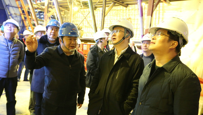 項(xiàng)目部總工程師陳志泉(右)介紹工程進(jìn)展情況