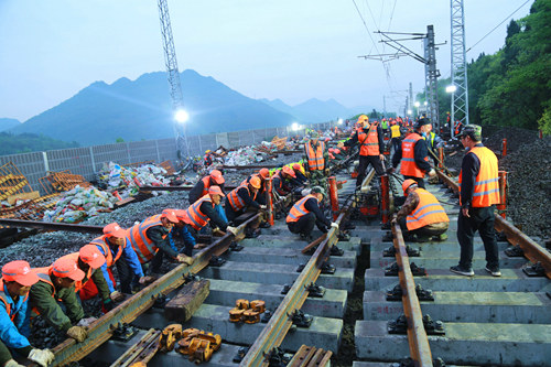同時,項目部不斷加大安全及運輸組織盯控,增調數臺先進換枕、撥道及大型機械設備,10余家專業(yè)外協勞務隊伍,3000余名員工24小時不停歇的奮戰(zhàn)在站改施工一線。并且在公司的大力支持協調下,一、二、三、四分公司所屬員工紛紛走進涪秀,齊力攻堅涪秀二線鐵路的建設。