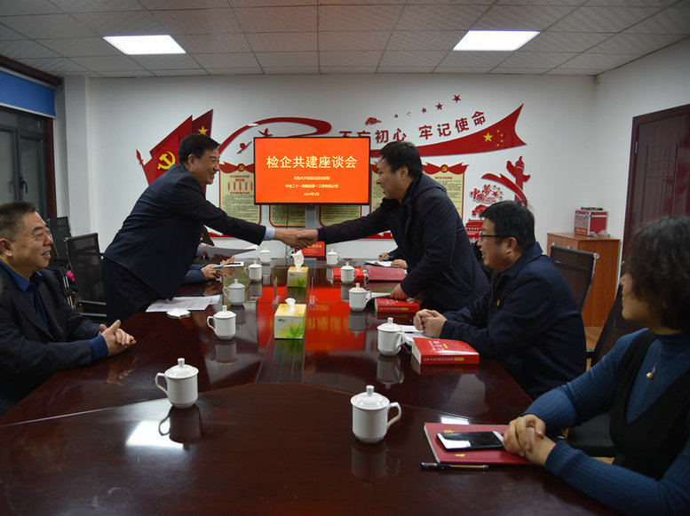 1月14日下午,新疆維吾爾自治區(qū)人民檢察院烏魯木齊鐵路運(yùn)輸檢察分院黨組書記、檢察長(zhǎng)馬士軍一行5人到中鐵二十一局一公司總部與公司董事長(zhǎng)、黨委書記李啟成、黨委副書記、總經(jīng)理?xiàng)罴t亮、黨委副書記、紀(jì)委書記關(guān)崇屹等人舉行了座談,互相介紹了檢察院、一公司最新改革發(fā)展情況,增進(jìn)了雙方的了解。