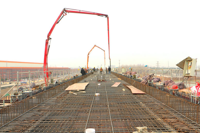 圖為武漢江北項目陽大公路特大橋現(xiàn)澆連續(xù)梁澆筑施工現(xiàn)場