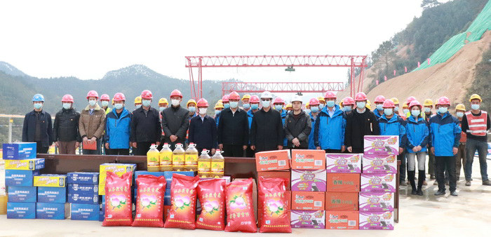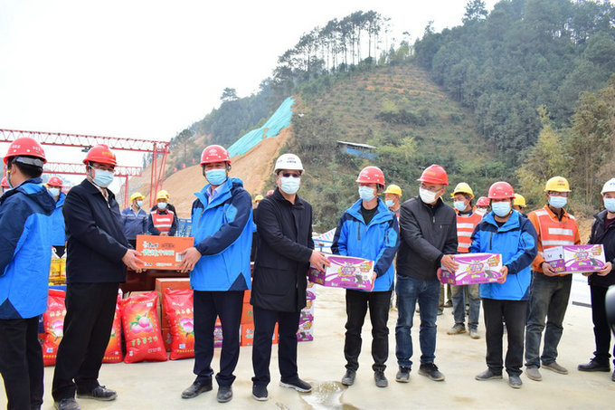 本網(wǎng)廣西南寧1月21日訊(通訊員 龍凡 蔡曉菲)又是一年新春到,最是情暖歲寒時(shí)。1月20日,在新春佳節(jié)即將來臨之際,廣西南寧交投集團(tuán)董事長楊漣、副總經(jīng)理林海松,中鐵建北部灣集團(tuán)總經(jīng)理鄭長偉,六賓高速公司總經(jīng)理張二毛、副總經(jīng)理黃華康,六賓高速總包部指揮長彭磊一行,帶著新春的美好祝福走進(jìn)中鐵二十一局六賓三標(biāo)項(xiàng)目現(xiàn)場,為堅(jiān)守在一線的施工人員送上慰問品和新年祝福。六賓高速相關(guān)單位和部門參加慰問。