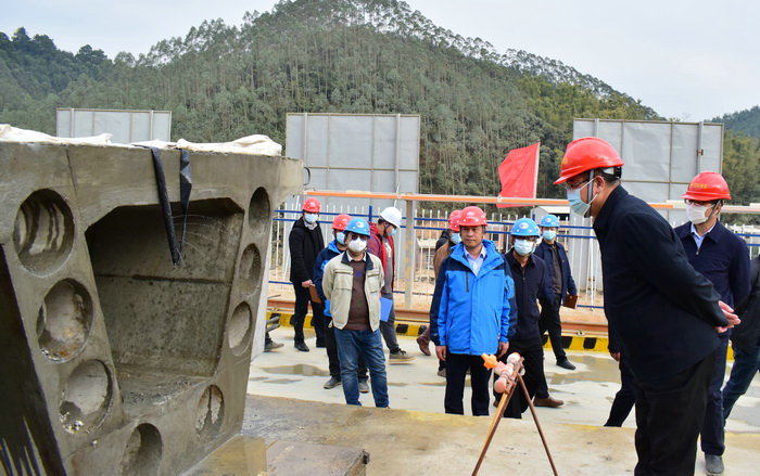 南寧交投集團(tuán)董事長楊漣一行先后來到陳平互通、梁場檢查施工、防疫、工程質(zhì)量、安全生產(chǎn)等具體工作的開展情況。在梁場,楊漣一邊仔細(xì)聽取項(xiàng)目經(jīng)理王永奇對(duì)現(xiàn)階段梁場基本情況介紹,一邊觀看存梁區(qū)的成品箱梁。他對(duì)梁體的外觀、質(zhì)量以及制梁、架梁施工方案都給予了贊揚(yáng),并表示此次主要走訪點(diǎn)選擇梁場,其重要性不言而喻。他要求全體參建人員要提高站位、錨定目標(biāo),牢固建設(shè)六賓高速標(biāo)桿工程的信念。在新的一年里再接再厲加油干,奮力打造一流作品,在確保質(zhì)量的前提下科學(xué)合理安排工期,打造亮點(diǎn)。