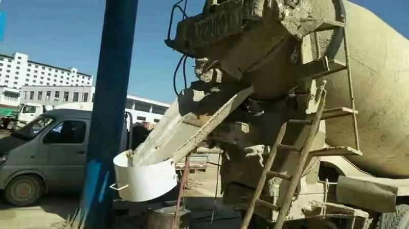 由于該項目部還擔負著全線路面施工,水穩(wěn)拌合站及瀝青拌合站均建設在20多公里外的清華鎮(zhèn)地界,兩座站場基礎建設需要大量混凝土,而這些混凝土均需在A1標段一號拌合站生產,混凝土運輸需經過縣道、鄉(xiāng)道和村道。為保證混凝土運輸途中不灑落、不污染路面,項目部領導經過研究,決定在混凝土運輸罐車卸料簸箕口加裝一個便于拆裝的鐵制接料桶,這樣就能有效防止混凝土運輸罐車行駛途中發(fā)生滴漏,以保證不污染路面。