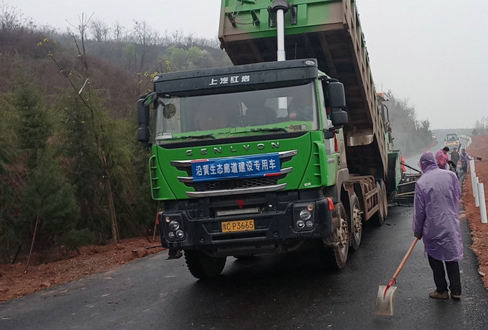 圖為安裝護(hù)欄 走進(jìn)沿黃生態(tài)廊道第二標(biāo)段施工現(xiàn)場,已經(jīng)是深夜,施工道路兩旁青松挺拔、翠竹林立,通往鷹嘴山的彩色瀝青道路線形優(yōu)美、宛若彩虹。一路驅(qū)車,途徑王村、西溝村、陳灣村、西北村、光華村、新華村、向南至東嶺村,施工沿線燈火通明、機械穿行。現(xiàn)場組織井然有序,挖機揮臂氣勢如虹,一輛輛土方車、水泥罐車按照規(guī)劃運輸路線,整編前行;壓路機、攤鋪機等多種機械分段施作,輸料、攤鋪、碾壓、平整,規(guī)范施工;幾十名工人正手握鐵鏟將攤鋪機過去的路面產(chǎn)生的余料以及邊線碎石進(jìn)行平整、清理。早春三月的黃河小浪底水庫沿岸,深夜霧氣籠罩,天氣異常寒冷,工人們顧不上休息片刻,來不及停下腳步,挽起袖子、沉下身子、邁開步子,緊跟攤鋪到標(biāo)尾的施工機械車輛,忙碌的身影在鷹嘴深山的黑夜中顯得格外高大清晰。