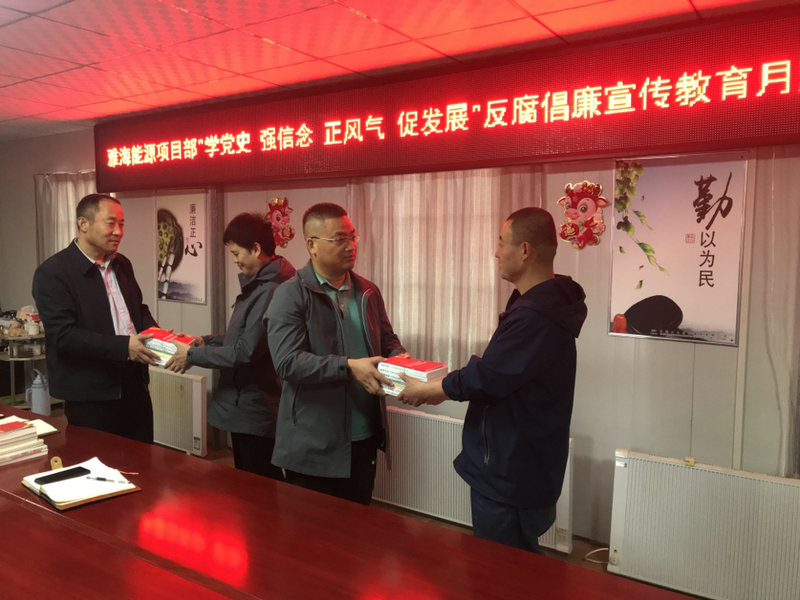 為深入貫徹十九屆五中全會和十九屆中央紀(jì)委五次全會精神,落實(shí)股份公司、集團(tuán)和公司2021年黨風(fēng)廉政建設(shè)和反腐敗工作會議部署,深入推進(jìn)反腐倡廉宣傳教育工作常態(tài)化、長效化,切實(shí)增強(qiáng)項(xiàng)目黨員領(lǐng)導(dǎo)干部廉潔意識和拒腐防變能力,按照公司紀(jì)委下發(fā)的《關(guān)于開展“學(xué)黨史 強(qiáng)信念 正風(fēng)氣 促發(fā)展”反腐倡廉宣傳教育月活動的通知》文件精神,雅海能源項(xiàng)目結(jié)合黨史學(xué)習(xí)教育,鞏固深化“不忘初心,牢記使命”主題教育成果,開展了以“學(xué)黨史 強(qiáng)信念 正風(fēng)氣 促發(fā)展”為主題的反腐倡廉宣傳教育月系列活動。