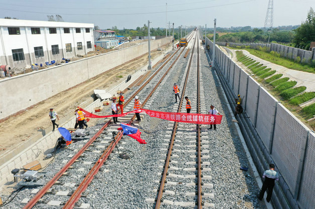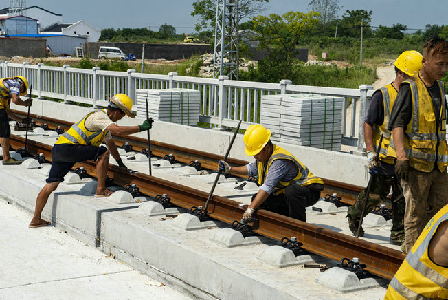 黃黃高速鐵路全線鋪軌告捷該公司自進(jìn)場(chǎng)以來,項(xiàng)目部嚴(yán)格按照武九客專湖北公司總體目標(biāo),落實(shí)公司安全生產(chǎn)要求,精心組織,精準(zhǔn)施作。在鋪軌、架梁、制枕等多個(gè)專業(yè)不斷努力,加強(qiáng)自身管理,不斷探索創(chuàng)新,進(jìn)行信息化管控,實(shí)現(xiàn)智能建造。并成功打造出信息化與自動(dòng)化深度融合的國(guó)內(nèi)乃至全世界最先進(jìn)的雙塊式軌枕制造廠。鋪軌期間,廣大參建員工克服種種不利因素,多措并舉,以黃黃高鐵浠水南站為鋪軌中心,采用兩臺(tái)WZ-500型長(zhǎng)鋼軌鋪設(shè)機(jī)組,實(shí)現(xiàn)了6月19日首鋪的節(jié)點(diǎn)目標(biāo)。全體參建將士發(fā)揚(yáng)“凝心聚力、攻堅(jiān)克難”的精神,在做好疫情常態(tài)化防控的同時(shí),以鋪軌節(jié)點(diǎn)目標(biāo)為導(dǎo)向,風(fēng)雨兼程,戰(zhàn)汛情斗酷暑、晝夜奮戰(zhàn)、攻克多項(xiàng)技術(shù)難關(guān),不斷刷新鋪軌進(jìn)程。于8月9日完成黃黃高鐵與安九高鐵黃梅東站順利接軌,至9月1日順利完成全線鋪軌任務(wù)。