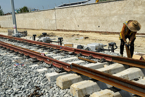 湖北黃岡訊 9月1日10時(shí)36分,在黃岡東站施工現(xiàn)場(chǎng),隨著最后一組500米長(zhǎng)軌平穩(wěn)落在無砟軌道板上,新建黃黃高速鐵路與武岡城際鐵路成功對(duì)接,標(biāo)志著由中鐵三局線橋公司承擔(dān)的黃黃鐵路全線鋪軌任務(wù)全部完成,為黃黃鐵路開通運(yùn)營(yíng)奠定了堅(jiān)實(shí)的基礎(chǔ)。