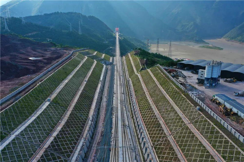 視頻新聞 在鄭萬高鐵巫山段,記者看到,軌道路基兩旁邊坡的綠化喬灌木搭配,高中低交會(huì),整個(gè)高鐵站看上去更加清新養(yǎng)眼。據(jù)介紹,該項(xiàng)目由中鐵二局承建,自景觀綠化工程開工以來,施工方結(jié)合巫山良好生態(tài)和旅游城市定位,科學(xué)規(guī)劃編制了復(fù)綠方案。同時(shí)邀請(qǐng)專家指導(dǎo),把好草籽喬木灌木的選擇關(guān)、栽培關(guān)、養(yǎng)護(hù)關(guān),最終將鄭萬高鐵巫山段建設(shè)成一個(gè)三季有花、終年常綠、色彩豐富的觀景綠色長廊。截至目前,鄭萬高鐵巫山段全線51000平方米的景觀綠化工程已圓滿完工。 中鐵二局二分部項(xiàng)目書記楊清寶說:“隨著鄭萬高鐵車站兩側(cè)綠化工程的完成,標(biāo)志著由中鐵二局打造的科技藍(lán)、生態(tài)綠、安全紅、人文橙四型高鐵圓滿收工,為下一步靜態(tài)驗(yàn)收打下堅(jiān)實(shí)的基礎(chǔ)。”