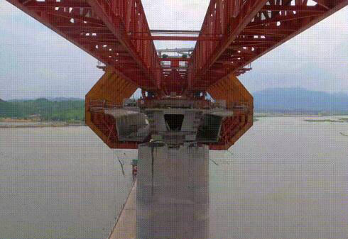 由于湄洲灣海域風(fēng)大浪急、潮汐明顯,澆筑的高標(biāo)號(hào)混凝土塌落度小,澆筑難度高,40.6米箱梁更需要連續(xù)澆筑一次成型,重達(dá)1000噸的箱梁對施工設(shè)備的安全性及可靠性提出了極高的要求。