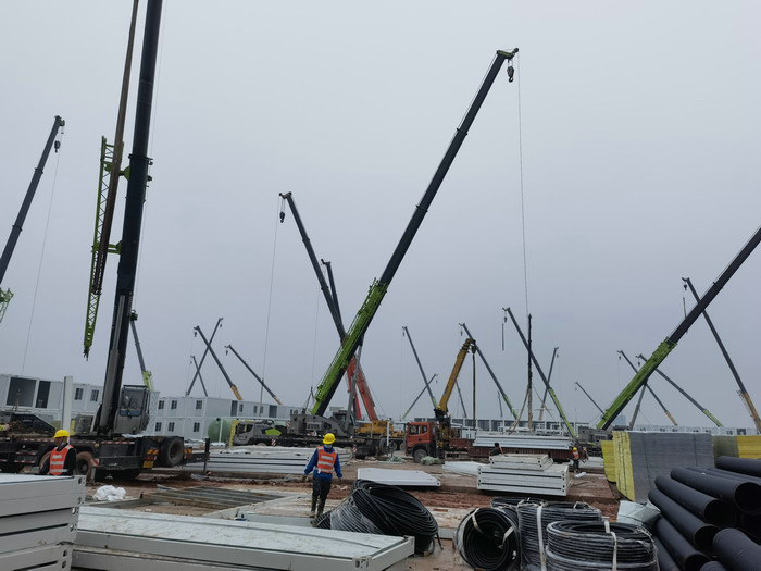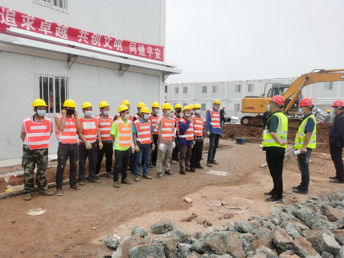 堅(jiān)持黨建引領(lǐng),提升政治站位,建設(shè)前方成立了黨支部,下設(shè)黨員突擊隊(duì),各級(jí)黨組織負(fù)責(zé)同志帶隊(duì),公司主管領(lǐng)導(dǎo)坐鎮(zhèn),項(xiàng)目班子成員帶領(lǐng)以50多名黨員干部為主的骨干團(tuán)隊(duì),分區(qū)域包保平推、沖在最前面。發(fā)揮先鋒模范作用,黨員領(lǐng)導(dǎo)干部在關(guān)鍵任務(wù)和重要工作面前“爭(zhēng)先鋒”“做表率”,做到“一名黨員一面旗幟”;黨支部開(kāi)展“黨員先鋒隊(duì)”“黨員示范崗”創(chuàng)建活動(dòng),聚焦關(guān)鍵任務(wù)、關(guān)鍵環(huán)節(jié),千方百計(jì)攻堅(jiān)克難。“才戰(zhàn)隔離點(diǎn),再戰(zhàn)方艙。”剛剛參加完茅尾海臨時(shí)隔離點(diǎn)的中鐵二十一局三公司副總經(jīng)理王永奇親自坐鎮(zhèn)現(xiàn)場(chǎng)。每天再施工現(xiàn)場(chǎng)察看工程進(jìn)度。進(jìn)入工作狀態(tài)后,他像一個(gè)不停旋轉(zhuǎn)的陀螺,不知疲倦地協(xié)調(diào)著現(xiàn)場(chǎng)的工作。