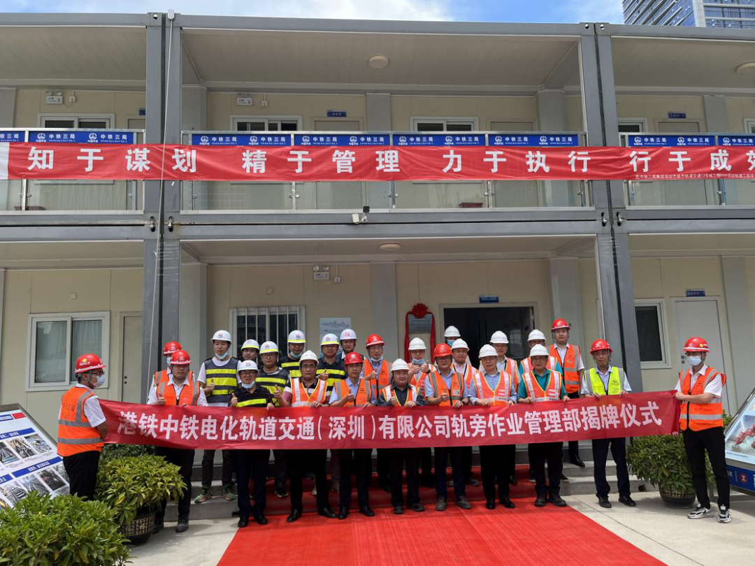 2022年5月26日港鐵中鐵電化軌道交通(深圳)有限公司軌旁作業(yè)管理部揭牌儀式在深圳地鐵13號線后海鋪軌基地隆重舉行,港鐵中鐵電化軌道交通(深圳)有限公司總經(jīng)理孟榮輝、副總經(jīng)理吳啟中、安全總監(jiān)蔡偉森,中鐵三局集團線橋有限公司副總經(jīng)理齊長寧、項目經(jīng)理劉志權、運輸分公司經(jīng)理蔣春林等相關領導出席揭牌儀式,項目運輸副經(jīng)理楊璐主持儀式。