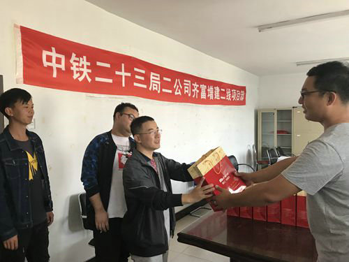 金秋送爽,丹桂飄香,在中秋佳節(jié)來臨之際,中鐵二十三局二公司齊富增建二線項(xiàng)目部工委會聯(lián)合中鐵二十三局二公司工會在K1+289.7公里鐵路道口人行天橋施工現(xiàn)場和項(xiàng)目部駐地辦公區(qū)開展迎雙節(jié)慰問活動,提前為項(xiàng)目部全體職工送上中秋的祝福。