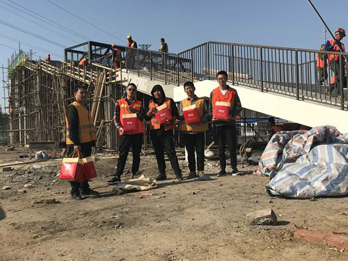 9月20日上午9時,齊富項(xiàng)目部副總工程師孟曉東帶領(lǐng)項(xiàng)目部綜合辦公室人員來到K1+289.7鐵路道口人行天橋施工現(xiàn)場,將中秋月餅送到了施工一線員工手中,為施工現(xiàn)場員工送上了禮品及祝福,感謝他們在雙節(jié)期間堅(jiān)守在人行天橋施工現(xiàn)場,為人行天橋建設(shè)的建設(shè)付出的辛勤努力,希望借此次雙節(jié)慰問活動可以讓節(jié)日期間離家在外、堅(jiān)守在工作崗位上的員工們度過一個愉快的節(jié)日。