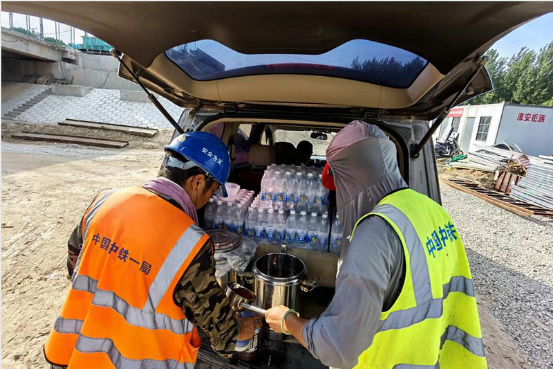 8月初,項目部再次召開了防暑降溫安全工作部署會,會議要求每位管理人員以對一線建設者生命和健康高度負責的態(tài)度,加強組織,落實責任制。每個領導班子掛鉤具體的作業(yè)班組,成立相應的微信聯(lián)系群,及時溝通,第一時間掌握施工人員的健康情況,并利用班前教育,對預防中暑及中暑急救治療辦法進行宣講。合理安排作業(yè)時間,嚴格實行“抓兩頭、歇中間”的避高溫措施,從而控制作業(yè)時間,減輕人員勞動強度,確保勞動者身體健康和生命安全。項目部在每個工點設置“清涼驛站”,為一線作業(yè)人員提供休息避暑的空間,里面裝有空調(diào),貼有防暑降溫知識宣傳掛畫,備有防暑藥品、足夠的飲用水,同時項目部每天定時為奮戰(zhàn)一線的工人送去鹽汽水、綠豆湯、西瓜以及雪糕等“降暑神器”,充分保證防暑降溫物資供應。真正的把清涼送到農(nóng)民工兄弟的手中,把關懷送到農(nóng)民工兄弟心坎。