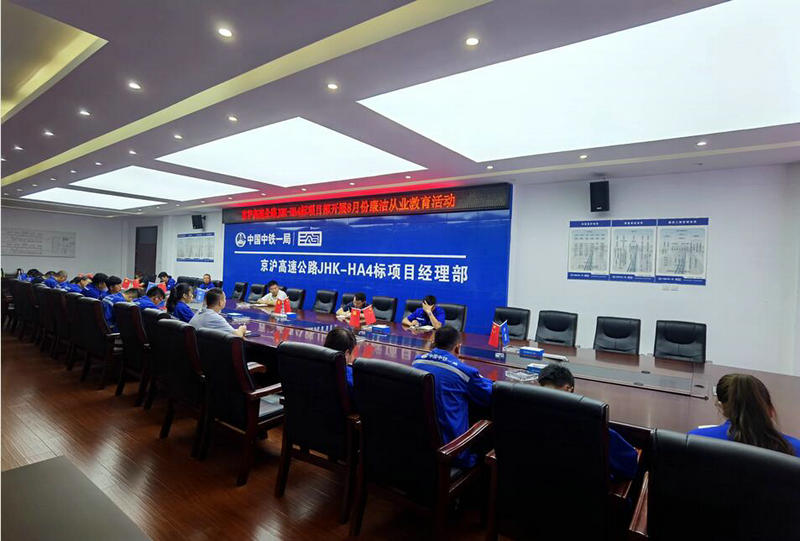 為進(jìn)一步加強(qiáng)黨風(fēng)廉政建設(shè),筑牢干部職工拒腐防變的思想道德防線,防止各種違法違紀(jì)行為的發(fā)生,8月17日,中鐵一局京滬高速公路HA4標(biāo)項(xiàng)目開展了8月份廉潔從業(yè)教育活動,項(xiàng)目班子成員、部門負(fù)責(zé)人及重要職能崗位人員參加。