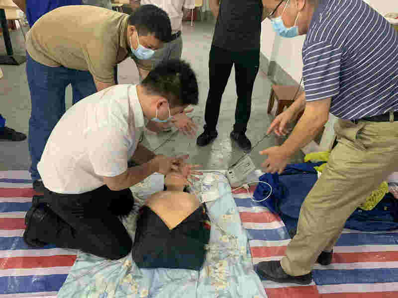 培訓(xùn)特邀廣東省第二人民醫(yī)院專家到場(chǎng)授課,通過PPT演示,詳細(xì)講解了如何判斷被救者心跳呼吸停止、心肺復(fù)蘇指征、心肺復(fù)蘇操作步驟、復(fù)蘇成功指征等專業(yè)知識(shí),并親自示范了從評(píng)估現(xiàn)場(chǎng)環(huán)境、判斷被救者狀態(tài)、清理口中異物及開展正確的按壓施救等各個(gè)環(huán)節(jié)。在專家演示完后,項(xiàng)目員工、業(yè)主及監(jiān)理人員也借助模擬人等教具進(jìn)行實(shí)操,學(xué)習(xí)了急救手法,同時(shí)專家也及時(shí)糾正了大家的錯(cuò)誤與不足。經(jīng)過了兩個(gè)多小時(shí)的現(xiàn)場(chǎng)演練互動(dòng),逐步掌握自救和互救技能,具備了一定的應(yīng)對(duì)心臟驟停的處理能力。