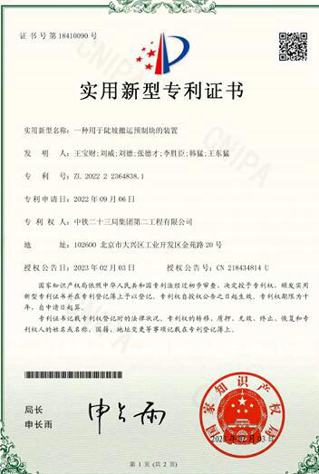 隨著近日一項實用新型專利證書的到來,由中鐵二十三局集團二公司深圳外環(huán)高速公路項目部去年向國家知識產權局申報的三項國家專利申請已經全部獲得批準。
