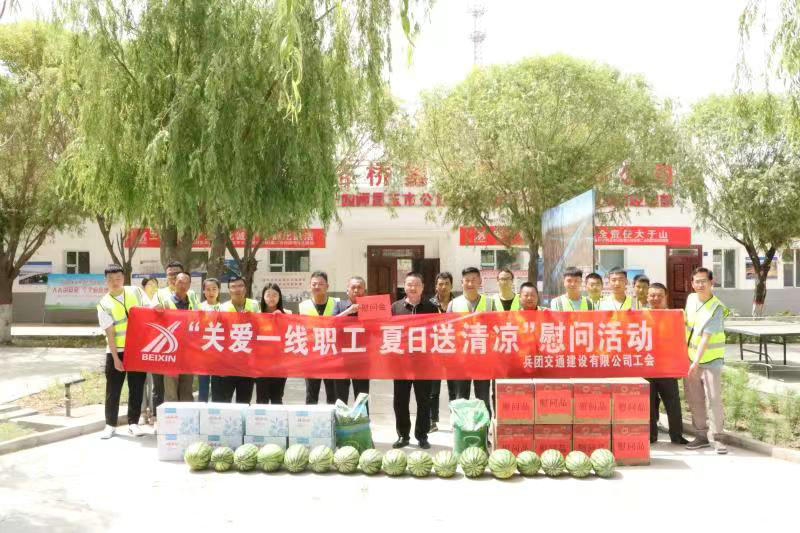 圖木舒克訊(通訊員 皇甫秉淑)近日,圖木舒克高溫炎熱天氣持續(xù),烈日炙烤著一線施工人員,也牽動著公司領(lǐng)導(dǎo)的心。6月13日上午,公司黨委副書記、總經(jīng)理趙睿龍赴新疆北新路橋集團(tuán)圖木舒克子公司所屬項目開展“關(guān)愛一線職工 夏日送清涼”慰問活動,去施工現(xiàn)場看望慰問一線職工,將防暑降溫藥品、西瓜、礦泉水、綠豆等送到職工手中。