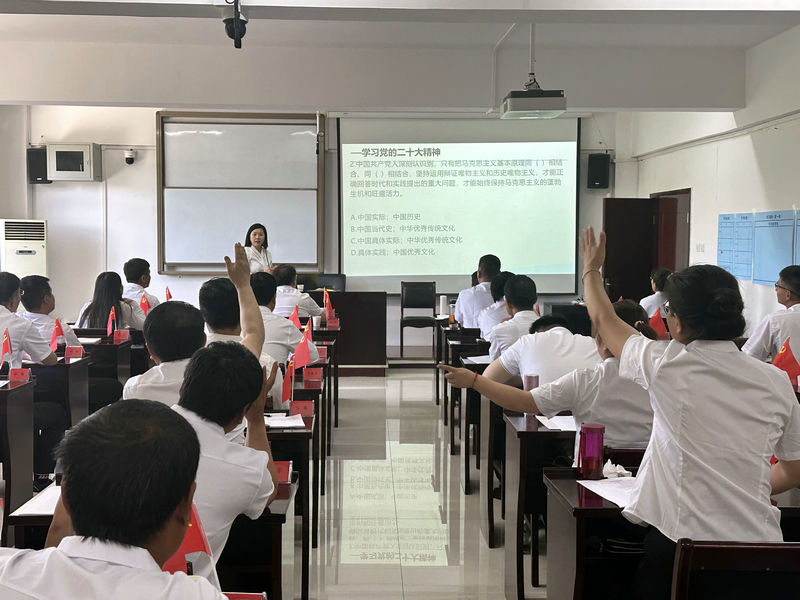在培訓(xùn)課堂上,黨校教授以其深厚的黨性修養(yǎng)和文化底蘊(yùn)為學(xué)員們細(xì)致宣講了黨的二十大精神、習(xí)近平新時(shí)代中國(guó)特色社會(huì)主義思想、《黨章》、《百年黨史》、《中國(guó)共產(chǎn)黨紀(jì)律處分條例》等黨的理論知識(shí),課后通過知識(shí)競(jìng)答進(jìn)一步激發(fā)了學(xué)員的學(xué)習(xí)熱情、鞏固了課堂知識(shí),通過團(tuán)建活動(dòng)增加了學(xué)員的團(tuán)結(jié)協(xié)作精神和愛國(guó)愛黨精神。