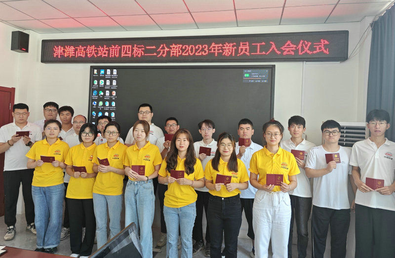 2023年夏季,中鐵十五局五公司共有160多名新員工入職。為實(shí)現(xiàn)“入職”即“入會”的目標(biāo),該公司在迎新活動中就組織學(xué)習(xí)了《中國工會章程》,讓大家對工會組織的性質(zhì)、職能,會員權(quán)利、義務(wù)以及入會條件、程序等有一個(gè)深入的理解和認(rèn)識。在分配到各基層單位之后,為強(qiáng)化新員工的會員意識,提高他們對工會組織的認(rèn)知度,各單位都為新員工舉行了嚴(yán)肅認(rèn)真的入會儀式,并發(fā)放《會員證》和《中華人民共和國工會法》。