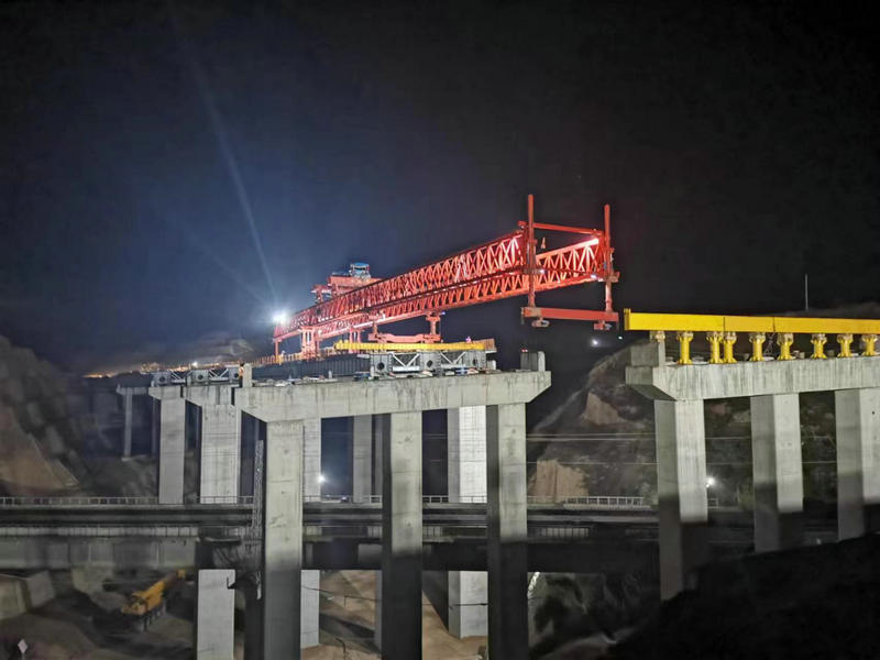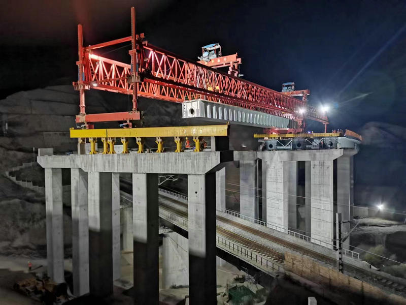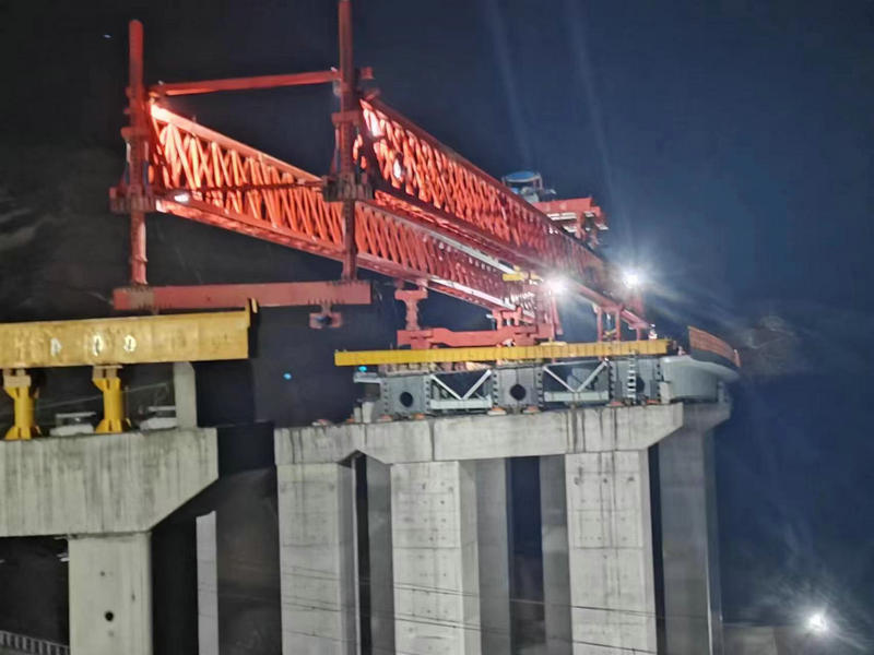 接到命令后,現(xiàn)場負(fù)責(zé)人宣布架橋機(jī)過孔開始,架橋機(jī)自平衡過孔25米后停止,后支腿提升,反托前移25米后,架橋機(jī)掛配重,后支腿剛支撐拆除后架橋機(jī)主梁前行25米,前支腿落至前橫移軌道后架橋機(jī)整體水平進(jìn)行調(diào)整,架橋作業(yè)各工序有條不紊的進(jìn)行。3點(diǎn)20分施工負(fù)責(zé)人檢查確認(rèn)過孔完成后,施工人員撤離,駐站聯(lián)絡(luò)員及時(shí)消記,2點(diǎn)50分蘭渝線上下行開通。