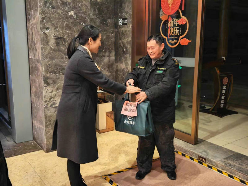 2月9日除夕夜8點,小區(qū)內(nèi)燈籠高掛,彩燈亮堂,處處洋溢著濃濃的節(jié)日氛圍,宜邦物業(yè)公司項目經(jīng)理及項目主管攜帶分包好的慰問品并逐一將慰問品親手遞交至小區(qū)各崗位在崗職工,表達著公司對除夕夜奮戰(zhàn)在一線崗位員工的關(guān)心和關(guān)愛,并送去了新春祝福。此次慰問不僅包括物質(zhì)關(guān)懷,更涵蓋了深層次的精神撫慰,旨在提升團隊的凝聚力和向心力。讓大家在工作崗位上也能感受到家的溫暖。