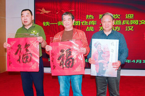 原計劃如期舉行戰(zhàn)友聚會的鐵道兵一師四團倉庫連的戰(zhàn)友聽說了兵網(wǎng)文創(chuàng)中心戰(zhàn)友到訪武漢,也專門提前了一天趕到武漢帛尚中洋酒店。在當(dāng)晚的接待晚宴前,到訪武漢的文創(chuàng)中心以鐵道兵戰(zhàn)友網(wǎng)的名義送上了破冰之旅的《英雄鐵道兵·人物風(fēng)采卷》(首卷),鐵道兵湖北戰(zhàn)友聯(lián)誼會會長馮水清也將自己剛剛印刷不久的《耄耋情緣》一書贈送給文創(chuàng)中心的戰(zhàn)友們。