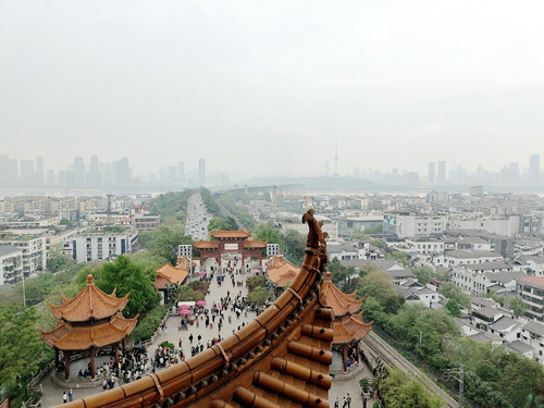 為了增加靈活性,負(fù)責(zé)人約定大家黃鶴樓景區(qū)自由賞玩,10點(diǎn)半統(tǒng)一在一個(gè)地方集中。于是我先后游玩了各種風(fēng)格的建筑,特別是黃鶴樓、白云閣兩大建筑,我還登上了樓層允許的最高層,對武漢全景一覽無遺,心胸都顯得異常開朗。正如史錫騰美篇所說:“沿著蛇山頂上(一條專供游人行走)的小路向東去,一連串古色古香的牌坊別有風(fēng)味。”“這些牌坊一個(gè)個(gè)嵌套在一起,給人以視覺上的美感。”