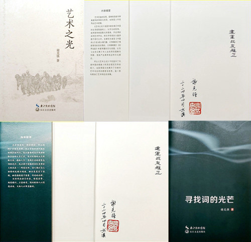 藝術(shù)創(chuàng)造的實質(zhì),是審美思維與審美建構(gòu)的具象化實質(zhì),也就是人對世界的藝術(shù)把握。手捧謝克強詩人的《尋找詞的光芒》和《藝術(shù)之光》兩本詩集,與名家合影,彰顯了戰(zhàn)友之間沒有隔閡的默契,定能讓戰(zhàn)友領(lǐng)會詩歌作品之扎根基礎(chǔ)的土壤。