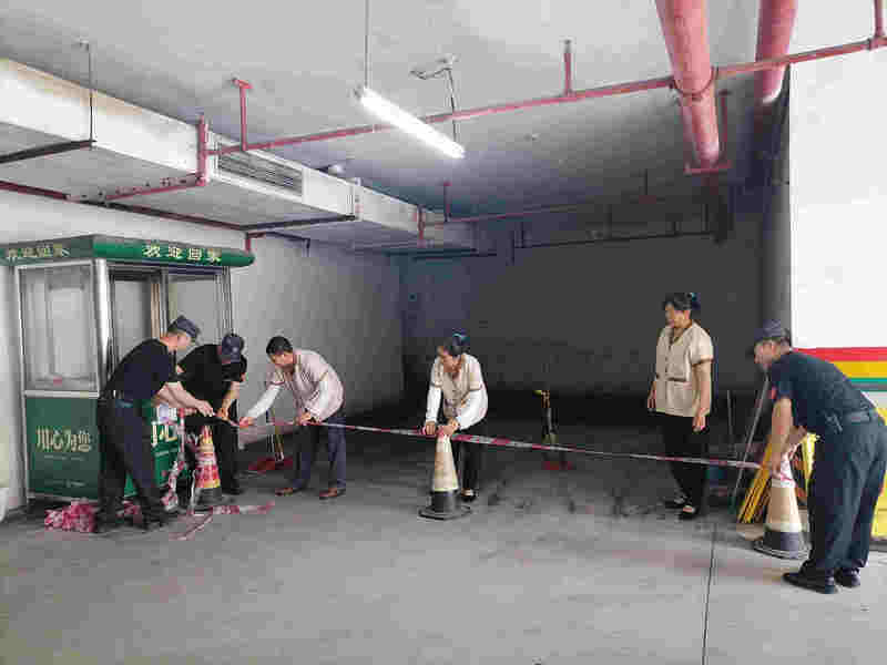險(xiǎn)情就是命令,接到通知后客服管家立即編輯暴雨溫馨提示在業(yè)主群進(jìn)行發(fā)布,并對商鋪門市進(jìn)行電話或者微信告知;環(huán)維部員工提前準(zhǔn)備好雨具,樓棟保潔工作人員對各自高層天臺地漏進(jìn)行檢查清理,并提前將單元大廳的防滑地墊和安全提示牌擺放到位;外圍保潔對道路水篦子鋼絲網(wǎng)地漏、綠植排水溝進(jìn)行檢查清理;秩序部由班長到消控室領(lǐng)取雨衣、雨靴分發(fā)到各崗位。維養(yǎng)部為應(yīng)對突發(fā)停電、排污井反水等情況檢查各街區(qū)的柴發(fā)室設(shè)備,車庫強(qiáng)排設(shè)備以及準(zhǔn)備潛水泵等工具。各部門準(zhǔn)備工作完成后由部門負(fù)責(zé)人向片區(qū)經(jīng)理報(bào)告。
